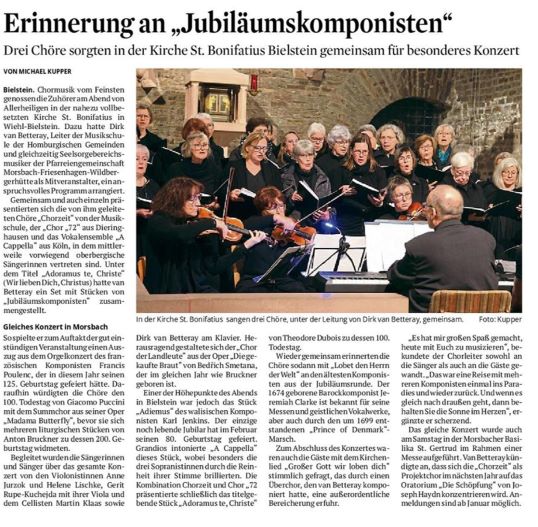 Zwei Konzerte in Bielstein, St. Bonifatius und Morsbach, St Gertrud.