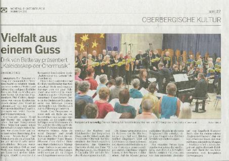 Vielen Dank an den Chorleiter, Dirk van Betteray, der es schaffte, einen wunderschönen Zusammenklang von Orchester, Solisten und sechs Chören zu erzeugen!